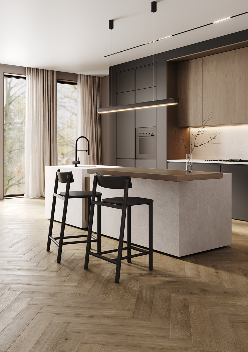 Сначала я думал об обычной плитке, однако в процессе подумал о кварцевом ламинате. Заказать решил в компании Fargo, так как много хорошего о них слышал да и бренд известен на всю Россию. Выбрал Fargo Comfort. Хочу сказать, что совсем не разочарован кварцевым ламинатом, укладывается он легко и быстро, по нему приятно ходить, а кухня визуально стала выглядеть еще лучше.