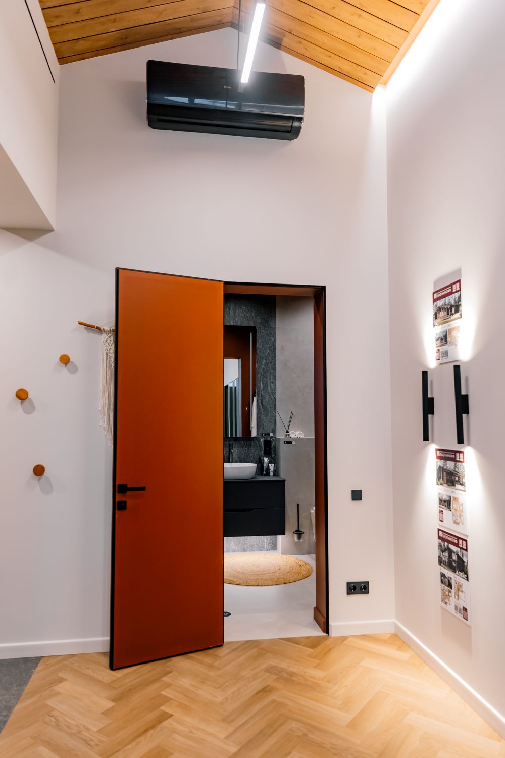 В активной зоне кварцевый ламинат уложен единым полотном, он подчёркивает целостность пространства и создает ощущение порядка. Это современный дом с качественными материалами, где комфорт чувствуется сразу — без лишних объяснений.
