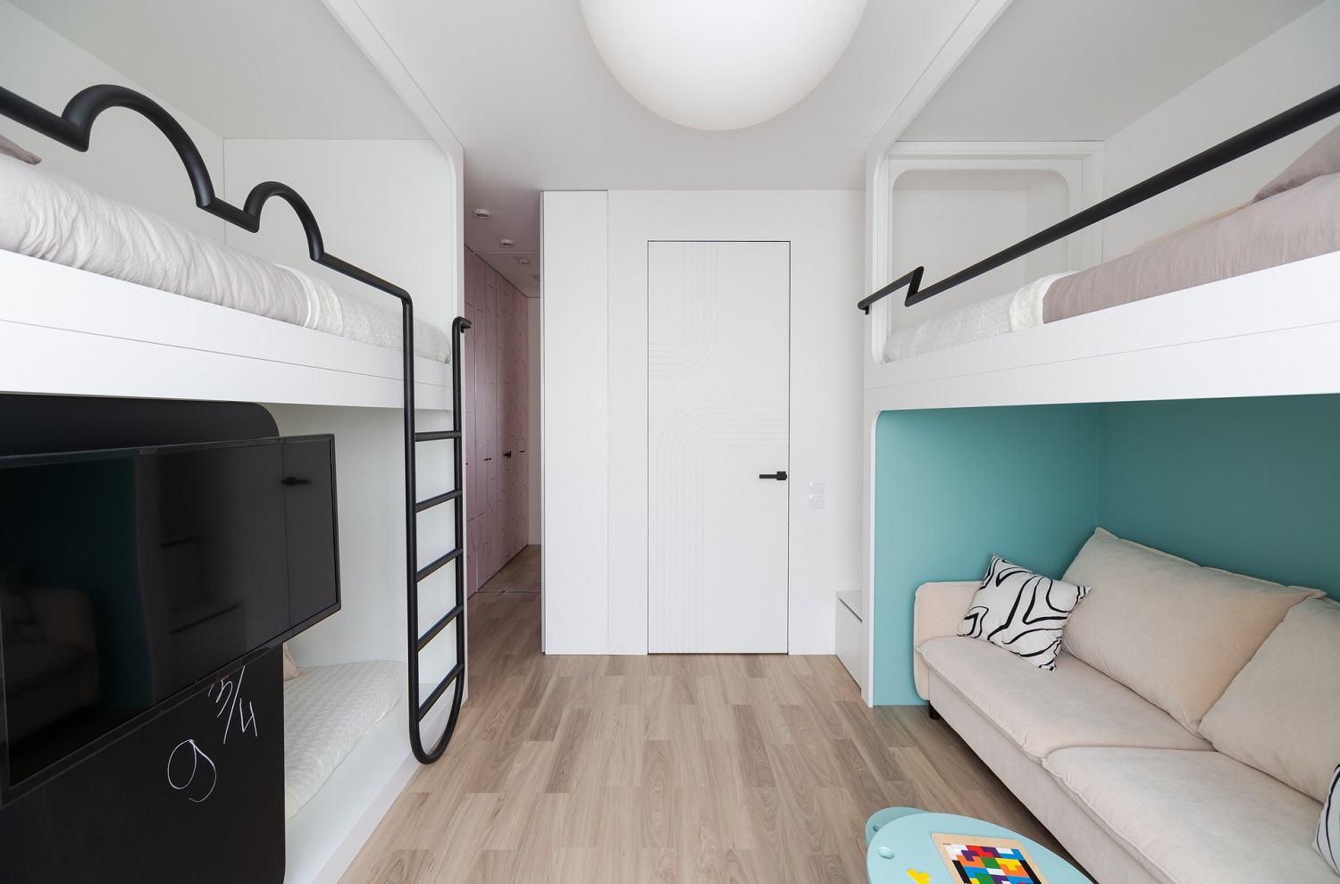 На полу — кварцевый ламинат Fargo Classic Дуб Бангкок 64W965: за такой пол не страшно даже в детской.